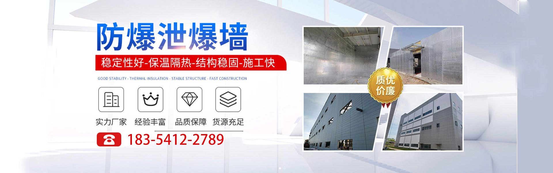 • 抗爆墻 耐火阻燃 可施工 輕質(zhì)高強(qiáng)
